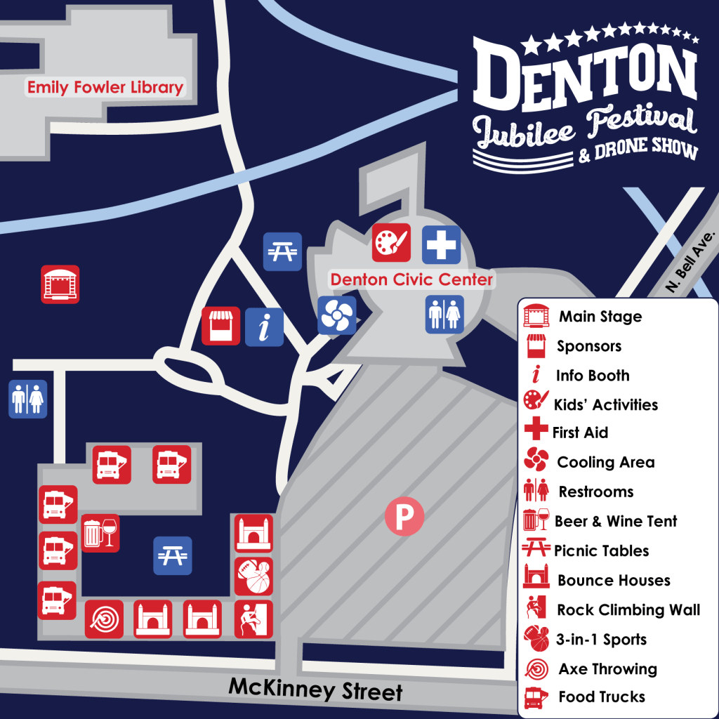 - 11:00 p.m. – Second Drone Show sponsored by Denton Noon Kiwanis